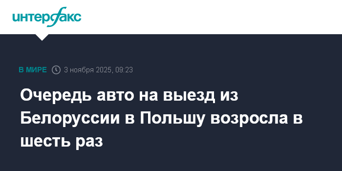 Москва. 3 ноября. INTERFAX.RU - После закрытия погранпереходов между Белоруссией и Литвой в шесть раз возросла очередь из легковых автомобилей, следующих из Белоруссии в страны ЕС через Польшу, сообщили в Государственном таможенном комитете страны.