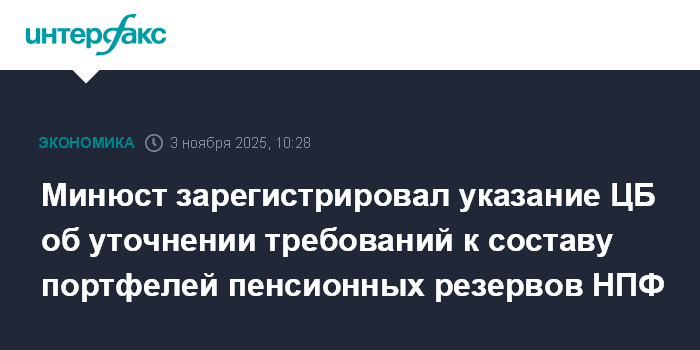 Минюст зарегистрировал указание ЦБ об уточнении требований к составу портфелей пенсионных резервов НПФ