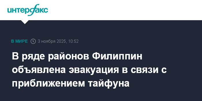 В ряде районов Филиппин объявлена эвакуация в связи с приближением тайфуна