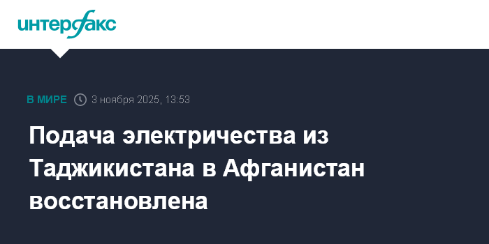 Подача электричества из Таджикистана в Афганистан восстановлена