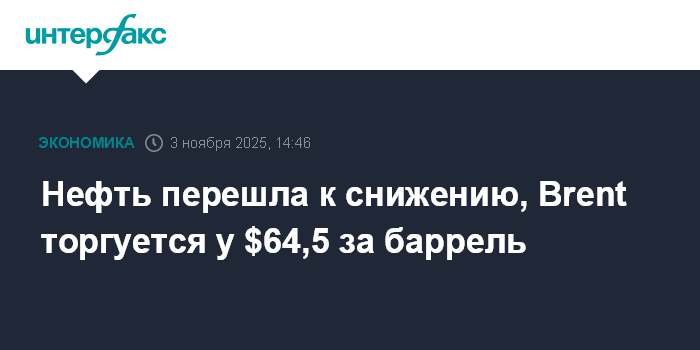 Нефть перешла к снижению, Brent торгуется у $64,5 за баррель