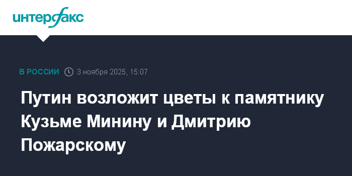 Путин возложит цветы к памятнику Кузьме Минину и Дмитрию Пожарскому