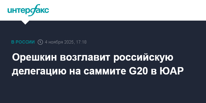 Орешкин возглавит российскую делегацию на саммите G20 в ЮАР