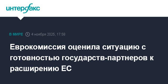 Москва. 4 ноября. INTERFAX.RU - Европейская комиссия (ЕК) приняла во вторник свой ежегодный пакет мер по расширению Евросоюза, дав оценку прогресса, достигнутого рассчитывающими на членство в ЕС государствами-партнерами, за последние 12 месяцев.