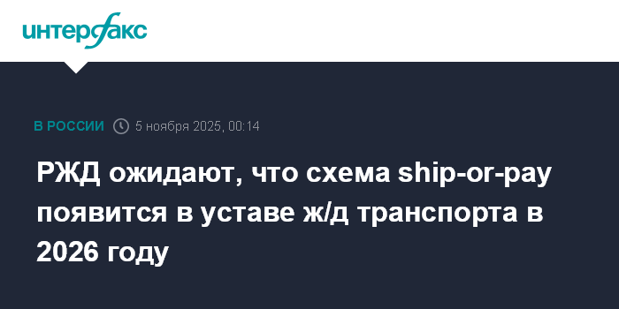 Москва. 5 ноября. INTERFAX.RU - ОАО "РЖД" рассчитывает, что изменения в статью 10 федерального закона "Устав железнодорожного транспорта РФ", касающиеся введения схемы ship-or-pay ("вези или плати"), будут одобрены в 2026 г., сообщила журналистам заместитель генерального директора компании Ирина Магнушевская.