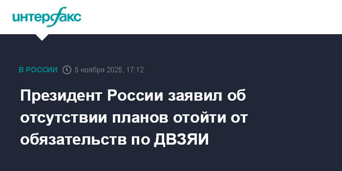 Президент России заявил об отсутствии планов отойти от обязательств по ДВЗЯИ