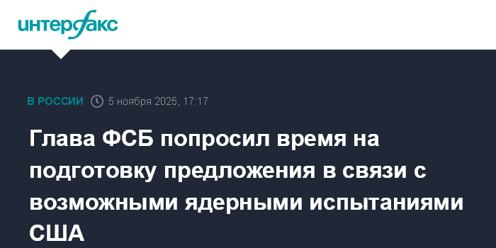 Глава ФСБ попросил время на подготовку предложения в связи с возможными ядерными испытаниями США