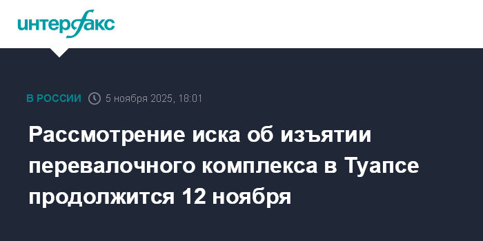 Рассмотрение иска об изъятии перевалочного комплекса в Туапсе продолжится 12 ноября