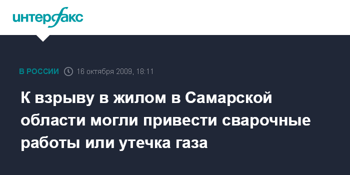 "Причиной взрыва бытового газа могли стать сварочные работы, которые до взрыва проводились на газовой трубе в доме", - сообщил агентству "Интерфакс" начальник отдела информации МЧС по Самарской области Михаил Метелкин.