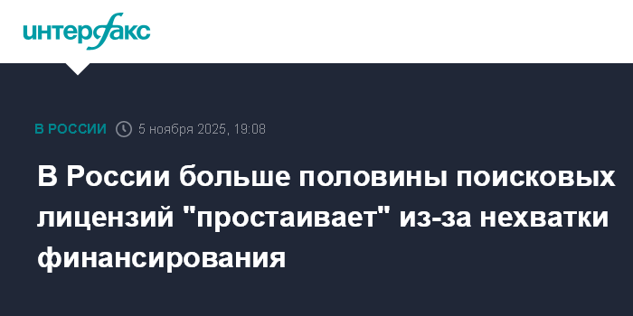 В России больше половины поисковых лицензий "простаивает" из-за нехватки финансирования