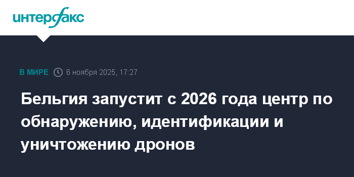 Москва. 6 ноября. INTERFAX.RU - На состоявшемся в четверг заседании Национального совета безопасности Бельгии, посвященном нарушениям воздушного пространства беспилотными летательными аппаратами, было решено запустить до 1 января 2026 года Национальный центр безопасности воздушного пространства.