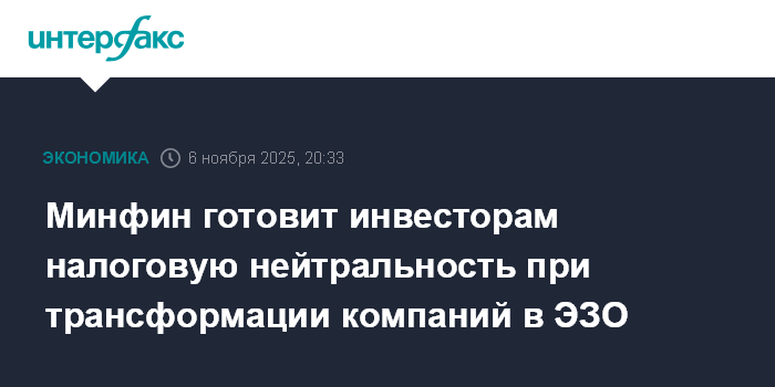 Минфин готовит инвесторам налоговую нейтральность при трансформации компаний в ЭЗО