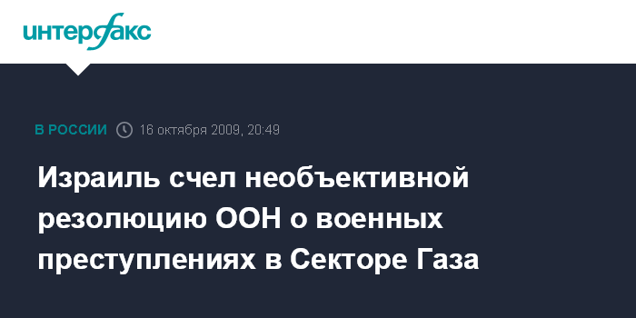 Иерусалим. 16 октября. INTERFAX.RU - Израиль отверг резолюцию о военных преступлениях израильтян в Cекторе Газа, принятую в пятницу Советом по правам человека ООН.