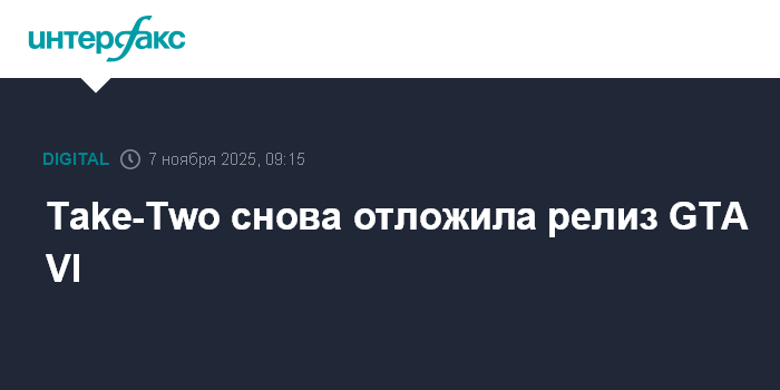 Москва. 7 ноября. INTERFAX.RU - Акции американского издателя видеоигр Take-Two Interactive Software подешевели на 6,5% на дополнительной сессии в четверг на новости, что компания вновь перенесла релиз игры Grand Theft Auto VI.