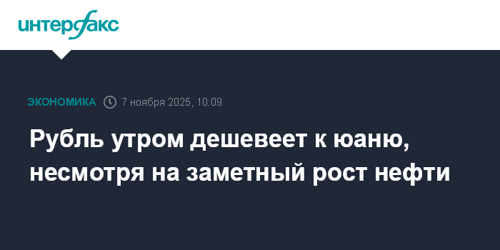Москва. 7 ноября. INTERFAX.RU - Китайский юань укрепляется на Московской бирже утром в пятницу; рубль дешевеет, несмотря на уверенное повышение нефти.