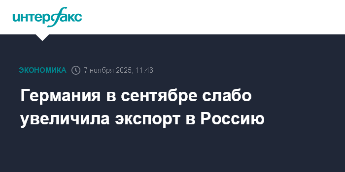 Москва. 7 ноября. INTERFAX.RU - Германия нарастила экспорт в Россию в сентябре на 0,8% по сравнению с августом, до примерно 600 млн евро, говорится в отчете Федерального статистического управления ФРГ Destatis.