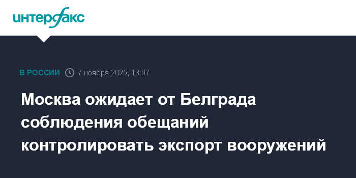 Москва ожидает от Белграда соблюдения обещаний контролировать экспорт вооружений