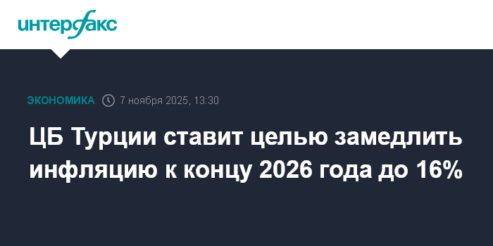 ЦБ Турции ставит целью замедлить инфляцию к концу 2026 года до 16%