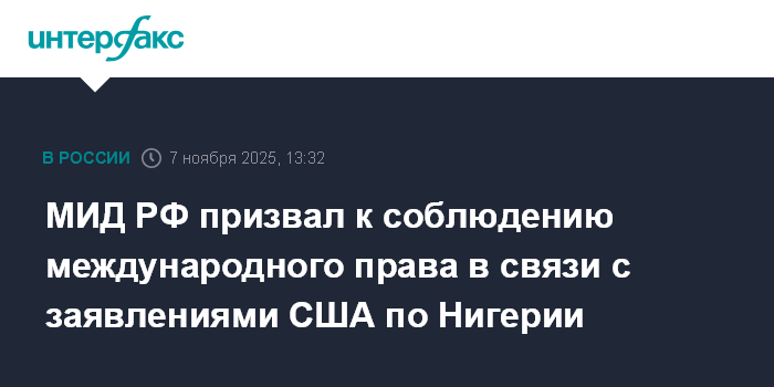 МИД РФ призвал к соблюдению международного права в связи с заявлениями США по Нигерии