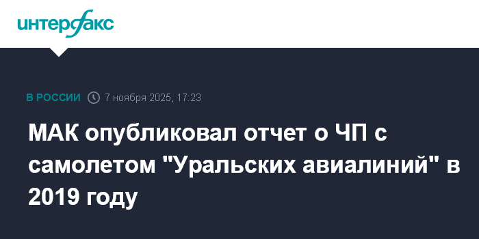 Москва. 7 ноября. INTERFAX.RU - Столкновение с птицами Airbus А321 "Уральских авиалиний", произошедшее после взлета из аэропорта Жуковский в Подмосковье в августе 2019 года, привело к критическому повреждению обоих двигателей и, как следствие, невозможности продолжения полета с выпущенными шасси и вынужденному приземлению вне аэродрома, пришла к выводу комиссия Межгосударственного авиационного комитета (МАК).