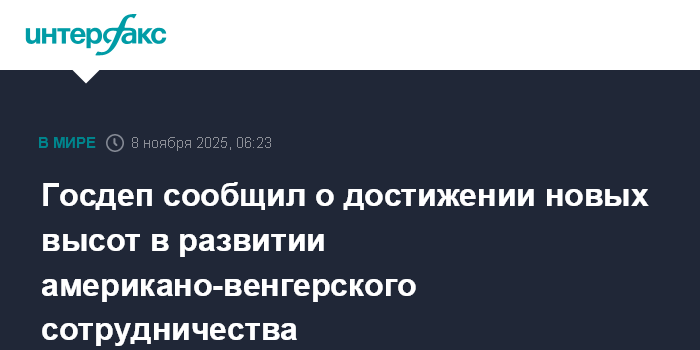 Госдеп сообщил о достижении новых высот в развитии американо-венгерского сотрудничества
