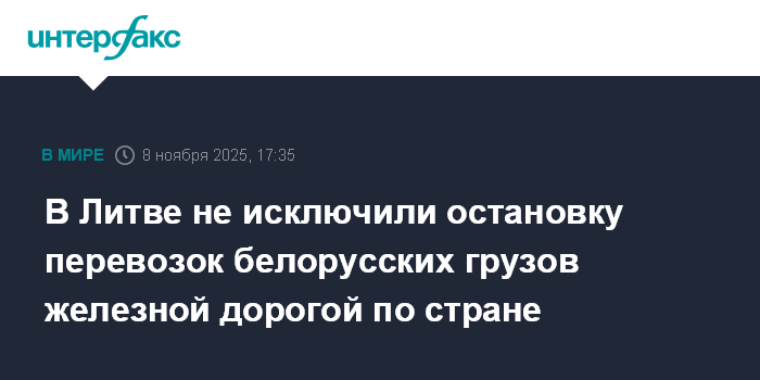 Москва. 8 ноября. INTERFAX.RU - Правительство Литвы рассматривает возможность остановки перевозок белорусских грузов железной дорогой по своей территории, заявил советник премьер-министра Литвы Игнас Добровольскас.