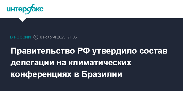 Правительство РФ утвердило состав делегации на климатических конференциях в Бразилии