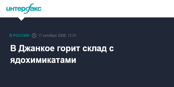 Москва. 17 октября. INTERFAX.RU - В Джанкое горит склад сельскохозяйственной химии, на котором хранились старые ядохимикаты.