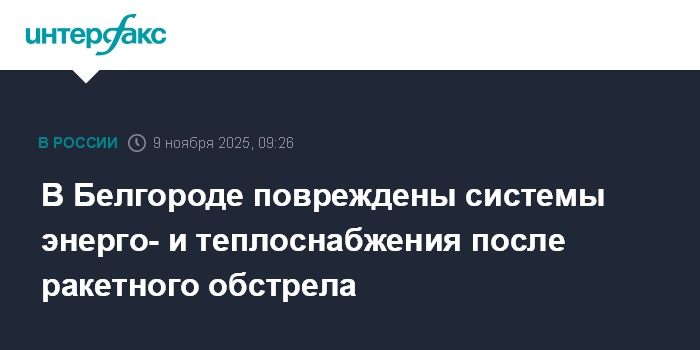 Москва. 9 ноября. INTERFAX.RU - Губернатор Белгородской области Вячеслав Гладков сообщил о масштабных повреждениях в системах энергоснабжения и теплоснабжения областного центра, которые были нанесены ракетным обстрелом накануне.