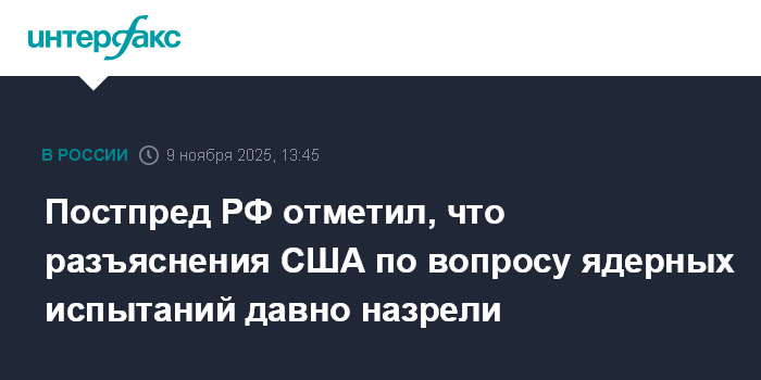Постпред РФ отметил, что разъяснения США по вопросу ядерных испытаний давно назрели