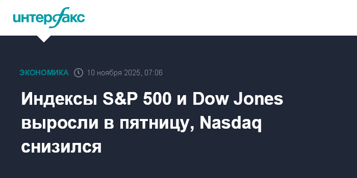 Индексы S&P 500 и Dow Jones выросли в пятницу, Nasdaq снизился