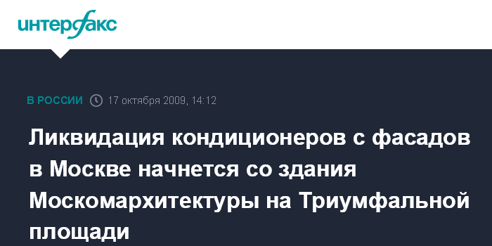 Москва. 17 октября. INTERFAX.RU - Главный архитектор Москвы пообещал начать массовое снятие кондиционеров с фасадов зданий в городе с собственного здания Москомархитектуры на Триумфальной площади.