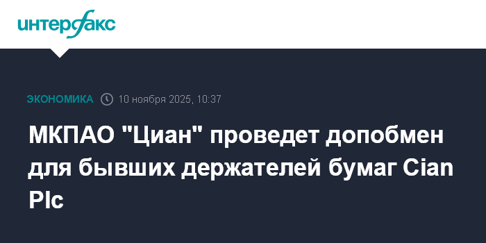Москва. 10 ноября. INTERFAX.RU - МКПАО "Циан" проведет дополнительный обмен для бывших держателей расписок Cian Plc, которые учитывались в российских депозитариях и были автоматически конвертированы в акции МКАО "ЦН".