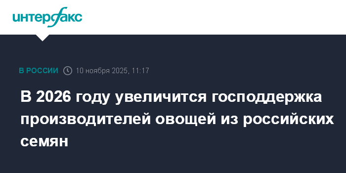 В 2026 году увеличится господдержка производителей овощей из российских семян