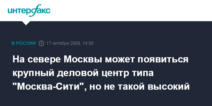 На севере Москвы может появиться крупный деловой центр типа "Москва-Сити", но не такой высокий