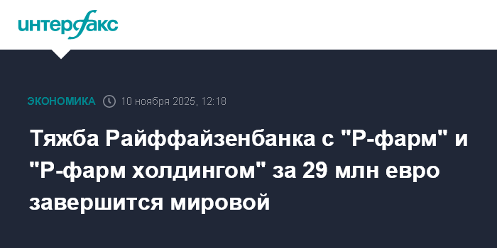 Тяжба Райффайзенбанка с "Р-фарм" и "Р-фарм холдингом" за 29 млн евро завершится мировой