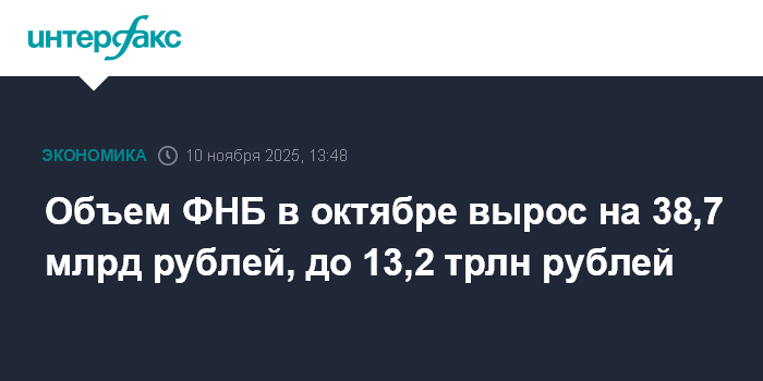 Объем ФНБ в октябре вырос на 38,7 млрд рублей, до 13,2 трлн рублей