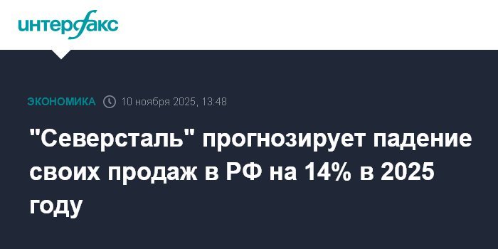 Москва. 10 ноября. INTERFAX.RU - "Северсталь" прогнозирует падение продаж на домашних рынках в 2025 году на 14%, заявил директор по маркетингу компании Дмитрий Максимов, выступая на конференции "Российский рынок металлов".