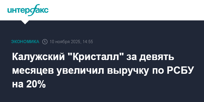 Калужский "Кристалл" за девять месяцев увеличил выручку по РСБУ на 20%