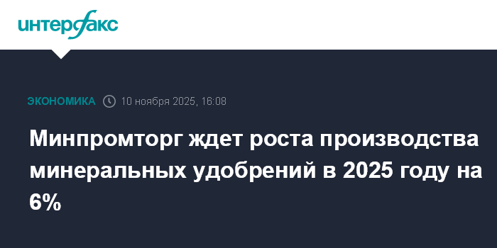 Минпромторг ждет роста производства минеральных удобрений в 2025 году на 6%