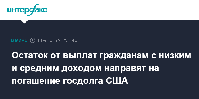 Остаток от выплат гражданам с низким и средним доходом направят на погашение госдолга США