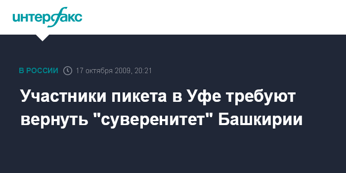 Как передал корреспондент агентства "Интерфакс-Поволжье", участники пикета, в основном молодые люди, развернули лозунги и плакаты с надписями на русском языке "Верните Конституцию РБ 1993 года", "Без суверенитета нет будущего Башкортостана" и т.п.