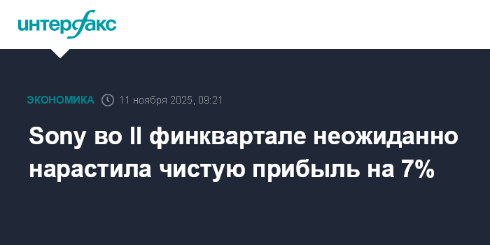 Москва. 11 ноября. INTERFAX.RU - Японская Sony Group Corp. во втором финансовом квартале нарастила чистую прибыль на 7% в годовом выражении, и все основные показатели превзошли ожидания рынка.
