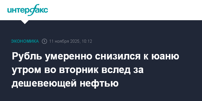 Рубль умеренно снизился к юаню утром во вторник вслед за дешевеющей нефтью