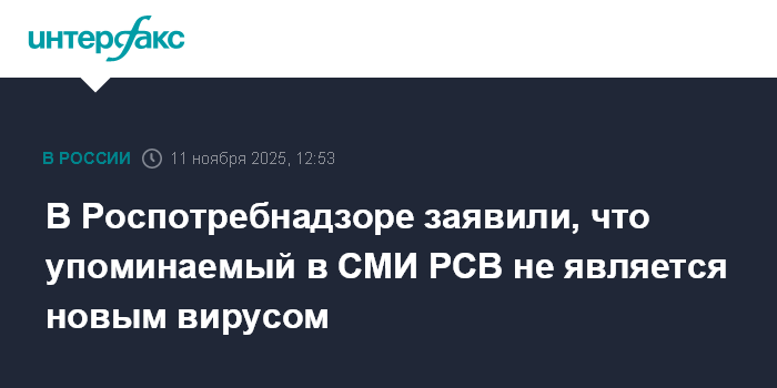 "Респираторно-синцитиальный вирус, упоминаемый в ряде сообщений СМИ, не является новым вирусом. РСВ - хорошо известный и широко распространенный возбудитель острых респираторных заболеваний (ОРВИ). В отдельных сезонах возможно повышение заболеваемости, но это характерно для многих сезонных респираторных инфекций и не свидетельствует о появлении нового патогена", - говорится в сообщении ведомства.