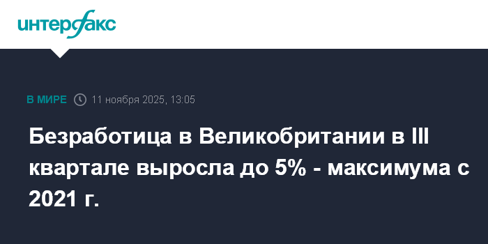 Безработица в Великобритании в III квартале выросла до 5% - максимума с 2021 г.