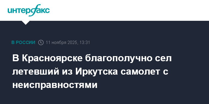 "По предварительным данным, сегодня при посадке у воздушного судна, следовавшего по маршруту "Иркутск-Красноярск", возникли технические неисправности. Воздушное судно благополучно произвело посадку в аэропорту пункта назначения, никто не пострадал", - сказано в сообщении.