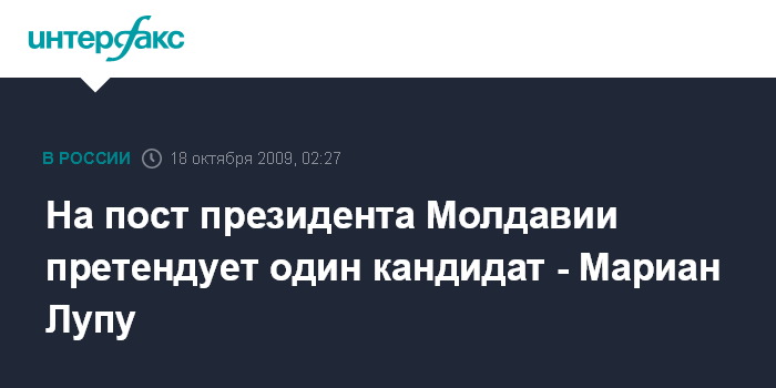 "К этому времени специальная комиссия по выборам президента Молдавии зарегистрировала только одного кандидата - председателя Демократической партии, депутата Мариана Лупу. В поддержку его кандидатуры подписались 26 депутатов от Альянса за европейскую интеграцию (АЕИ)", - сказал И.Плешка.