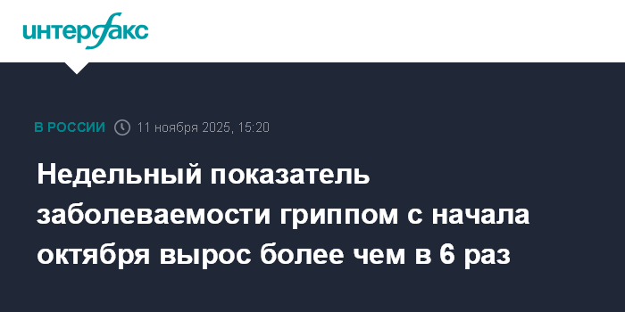 Москва. 11 ноября. INTERFAX.RU - Количество выявляемых случаев заболевания гриппом за неделю по сравнению с началом октября увеличилось более чем в шесть раз, сообщили журналистам в Роспотребнадзоре.