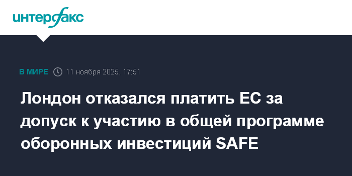 Лондон отказался платить ЕС за допуск к участию в общей программе оборонных инвестиций SAFE